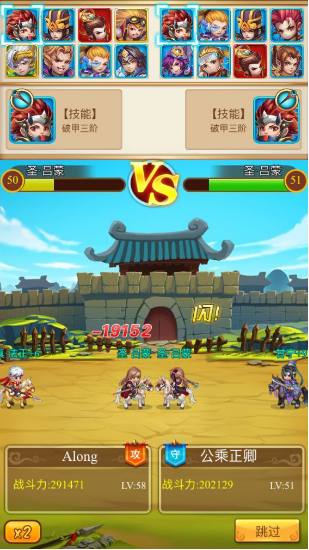PVP为车轮战模式,双方各派出8名武将,以经典车轮战方式出场。武将职业(弓手、炮手、军师、法师)有相互克制,出战前查看敌军阵营,选择最佳的排序和出场策略,类似田忌赛马,比实力也比智谋,斗智斗勇其乐无穷。