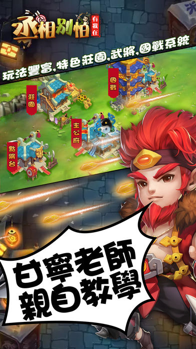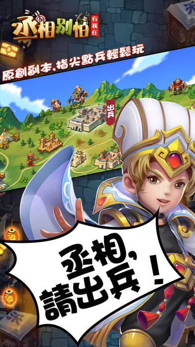 《丞相別怕有我在》是一款針對移動設備使用者開發的塔防策略+角色扮演類手機遊戲。遊戲以三國為背景,玩家扮演主公的角色回到三國,招募各路英雄,組建自己的勢力,最後一統三國。在遊戲中玩家可以體驗到各種玩法,包括塔防戰鬥,英雄培養,裝備培養,回合戰鬥系統等等,是一款非常有趣的三國類塔防策略休閒RPG遊戲。